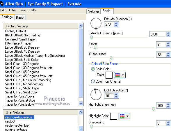 Effets>Modules Externes>Alien Skin Eye Candy 5 Impact - Extrude.