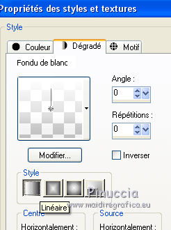 Placer en avant plan Dégradé et sélectionner le dégradé Fondu de blanc, style Linéaire.