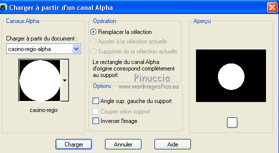 17. Sélections>Charger/Enregistrer une sélection>Charger à partir d'un canal alpha.