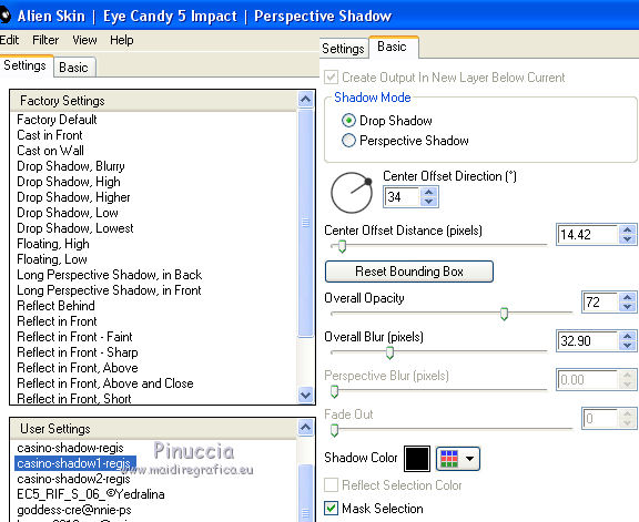 Effets>Modules Externes>Alien Skin Eye Candy 5 Impact - Perspective Shadow – preset casino-shadow1-regis.