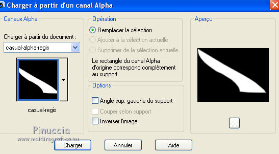 17. Sélections>Charger/Enregistrer une sélection>Charger à partir d'un canal alpha.