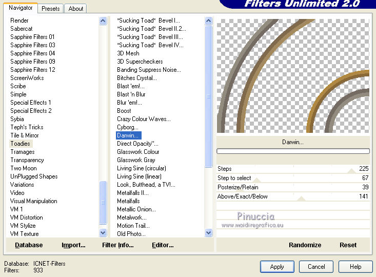 Effets>Modules Externes>Filters Unlimited 2.0 - Toadies - Darwin, par défaut.