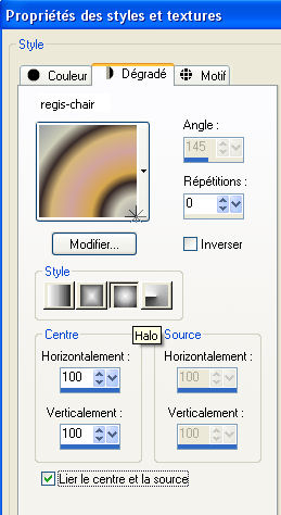 Mettre en avant plan Dégradé et sélectionner le dégradé regis-chair, avec ces settages: