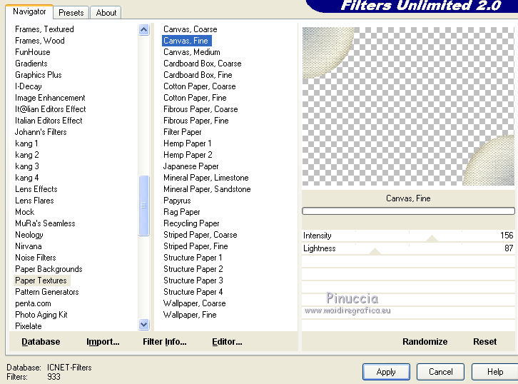 Effets>Modules Externes>Filters Unlimited 2.0 - Paper Textures - Canvas Fine, par défaut.