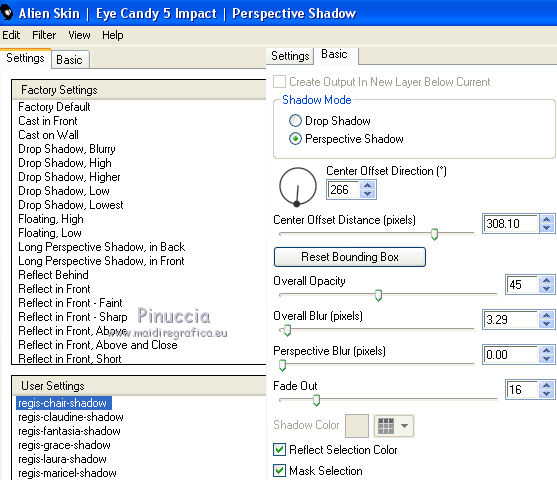 Effets>Modules Externes>Alien Skin Eye Candy 5 Impact - Perspective Shadow.