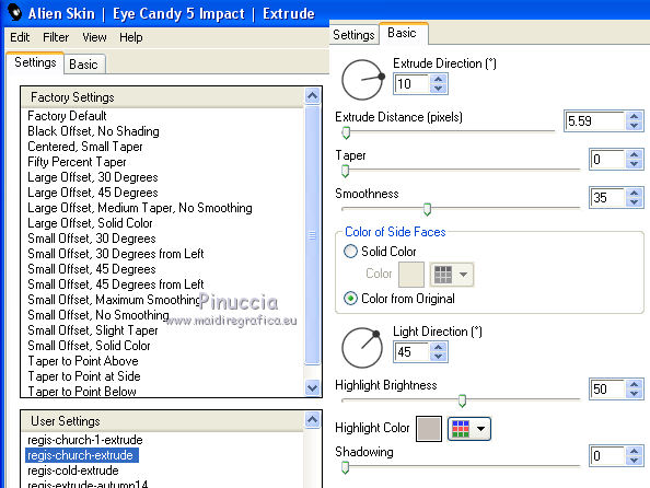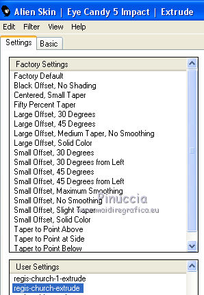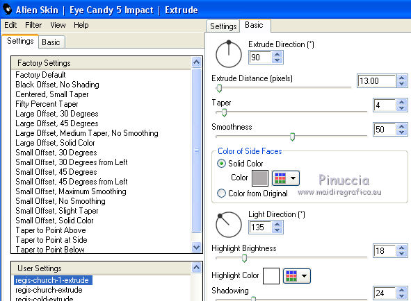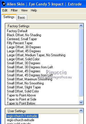 Effets>Modules Externes>Alien Skin Eye Candy 5 Impact - Extrude - preset regis-church-extrude.