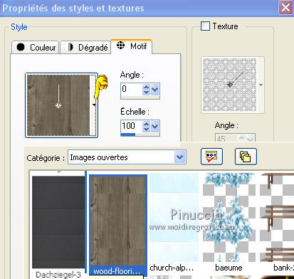 Placer en avant plan Motif et sélectionner, sous la catégorie Images ouvertes, le motif wood-flooring-1.