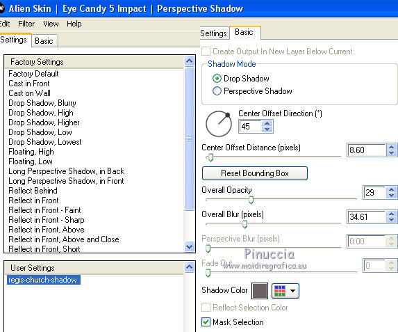 Effets>Modules Externes>Alien Skin Eye Candy 5 Impact - Perspective Shadow - preset regis-church-shadow.