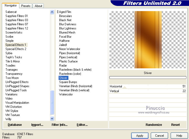 13. Effets>Modules Externes>Filters Unlimited 2.0 - Special Effects 1 - Shiver.