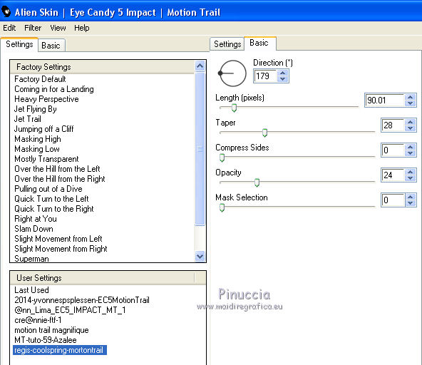 Sélectionner le preset regis-coolspring-motiontrail et ok.