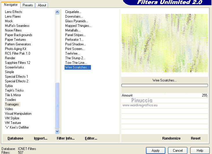 3. Effets>Modules Externes>Filters Unlimited 2.0 - Tramages - Wee Scratches