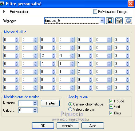 8. Effets>Filtre personnalisé - sélectionner le preset Emboss 6 et ok.