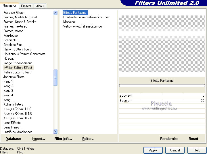 12. Effets>Modules Externes>Filters Unlimited 2.0 - Italian Editors Effects - Effetto Fantasma.