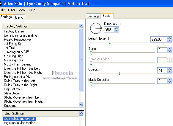 23. Effets>Modules Externes>Alien Skin Eye Candy 5 Impact - Motion Trail.