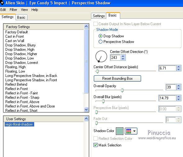 6. Effets>Modules Externes>Alien Skin Eye Candy 5 Impact - Perspective Shadow.