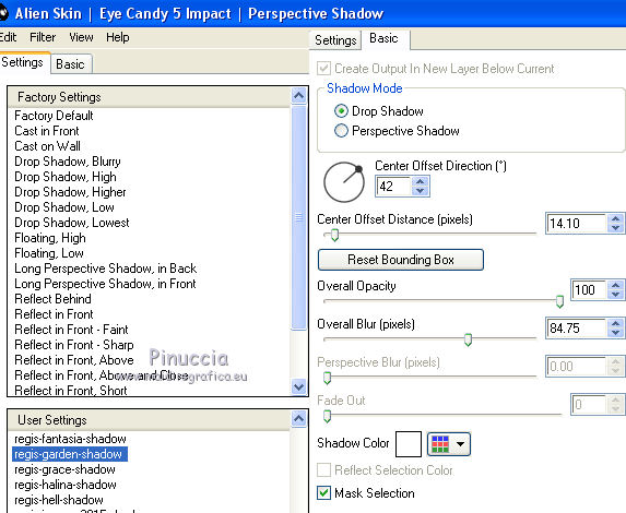 11. Effets>Modules Externes>Alien Skin Eye Candy 5 Impact - Perspective Shadow.