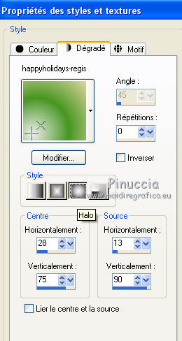 Placer en avant plan Dégradé et sélectionner le dégradé happyholidays-regis, style Halo.