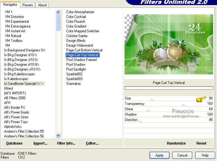 Effets>Modules Externes>Filters Unlimited 2.0 &<Sandflower Specials> - Page Curl Top Vertical.