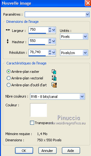 1. Ouvrir une nouvelle image blanche 750 x 550 pixels.