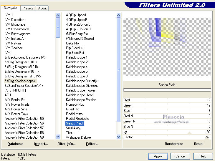 15. Effets>Modules Externes>&<Bkg Kaleidoscope> - Sands Plaid, par défaut.