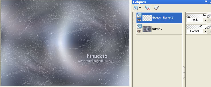 9. Placer le calque en mode Fondu et réduire l'opacité à 14%.