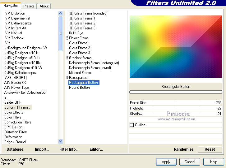 Effets>Modules Externes>Filters Unlimited 2.0 - Buttons & Frames - Rectangular Button.