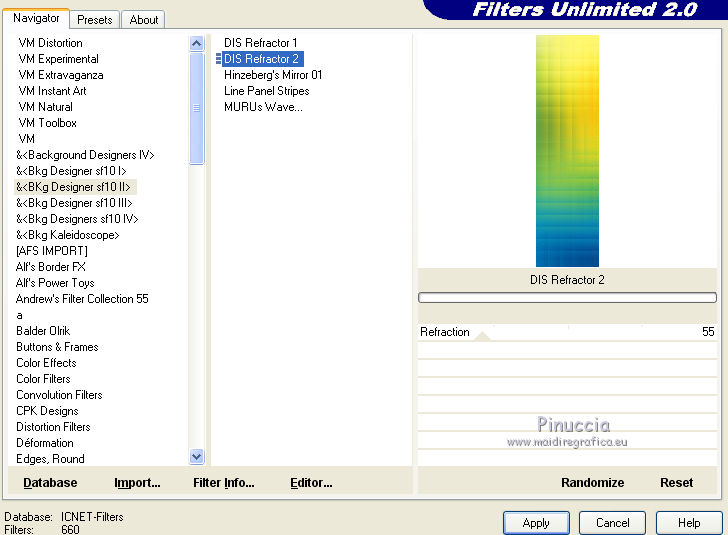 Effets>Modules Externes>Filters Unlimited 2.0 - &<Bkg Designer sf10II> - DIS Refractor 2.
