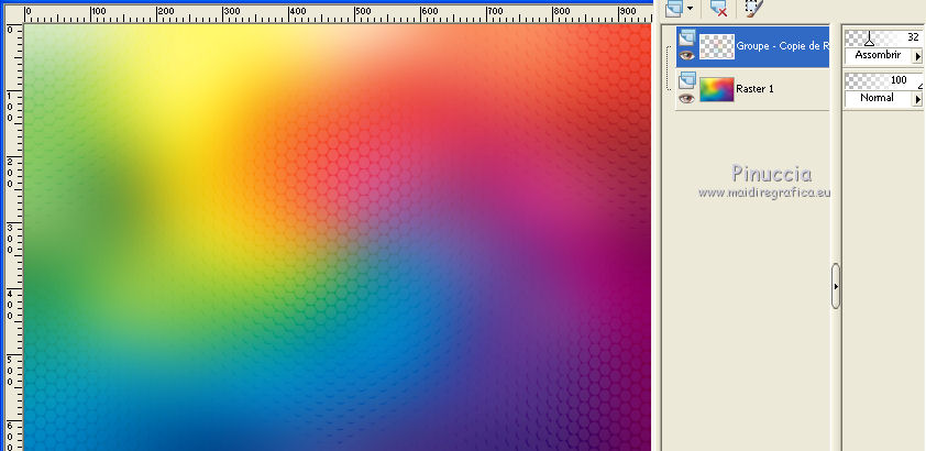 Placer le calque en mode Assombrir et réduire l'opacité à 32%.