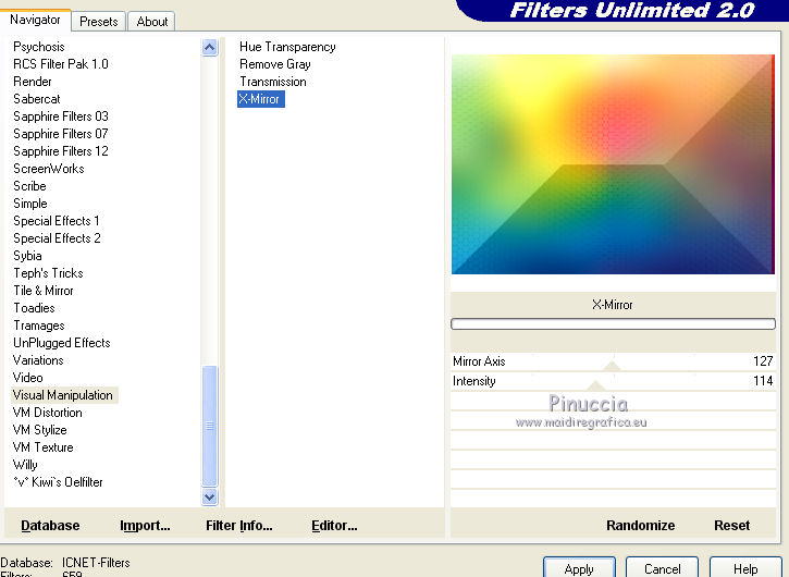 6. Effets>Modules Externes>Filters Unlimited 2.0 - Visual Manipulation - X Mirror.