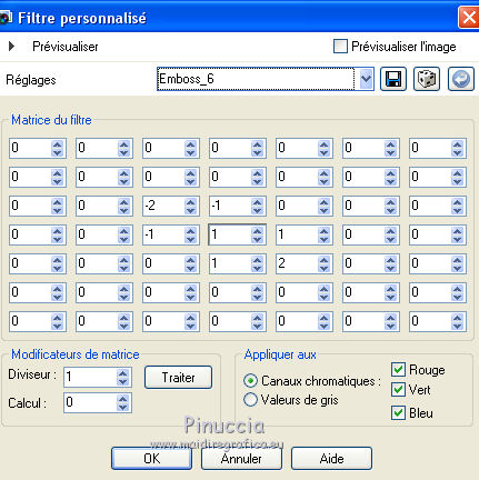 10. Effets>Filtre personnalisé - sélectionner le preset Emboss 6 et ok.