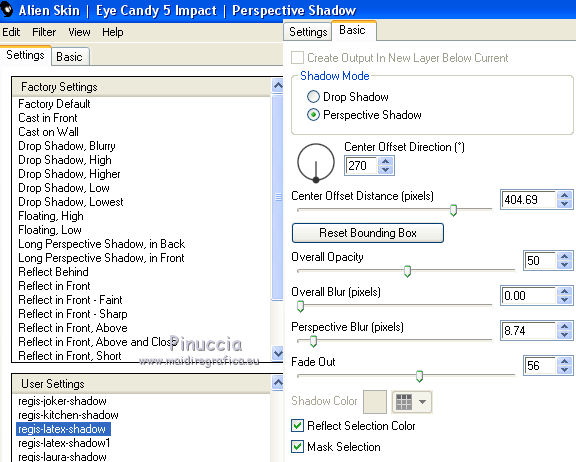 Sélectionner le preset regis-latex-shadow1 et ok.