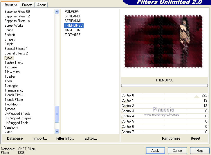 Répéter Effets>Modules Externes>Filters Unlimited 2.0 - Sybia - TREMORSC, par défaut.