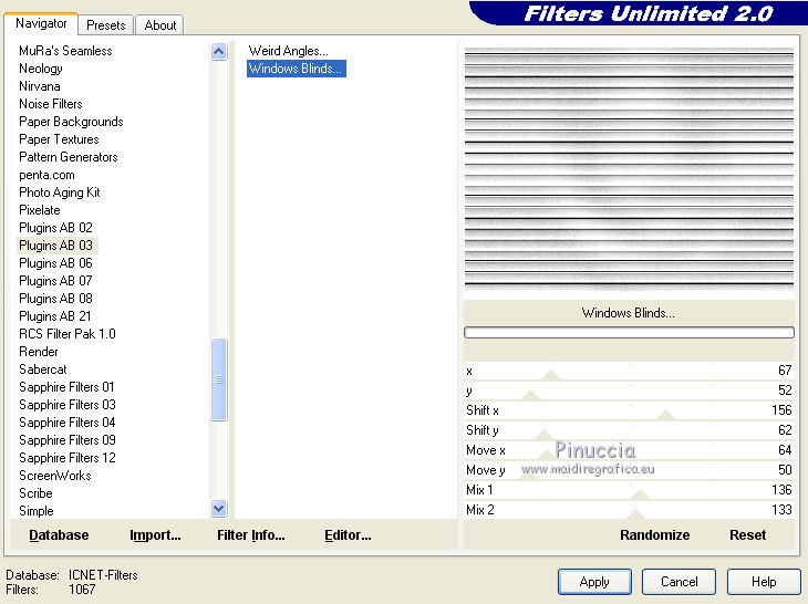 Effetti>Modules Externes>Filters Unlimited 2.0 - Plugins AB 03 - Window Blinds, par défaut.