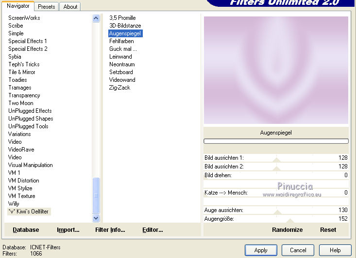 Effetti>Plugins>Filters Unlimited 2.0 - °v° Kiwi's Oelfilter - Augenspiegel.