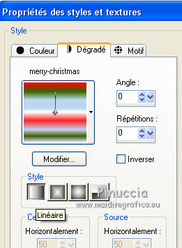 12. Placer en avant plan Dégradé et sélectionner le dégradé merry christmas, style Linéaire.