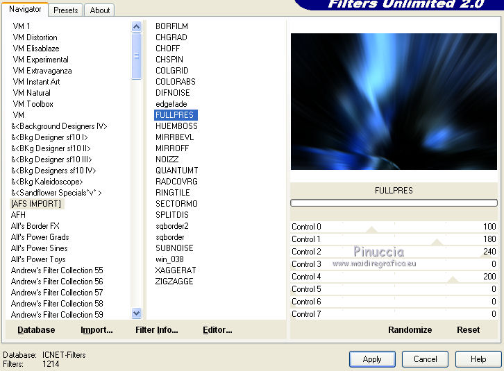 4. Effets>Modules Externes>Filters Unlimited 2.0 - AFS Import - Fullpress, par défaut.