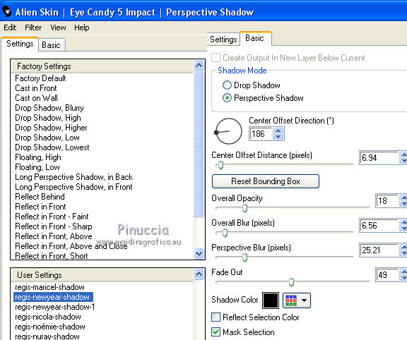 Effets>Modules Externes>Alien Skin Eye Candy 5 Impact - Perspective Shadow.