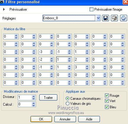 10. Effets>Filtre personnalisé - sélectionner le preset Emboss 8 et ok.