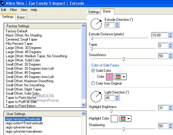 Sélectionner le preset regis-newyear15-extrude et ok.