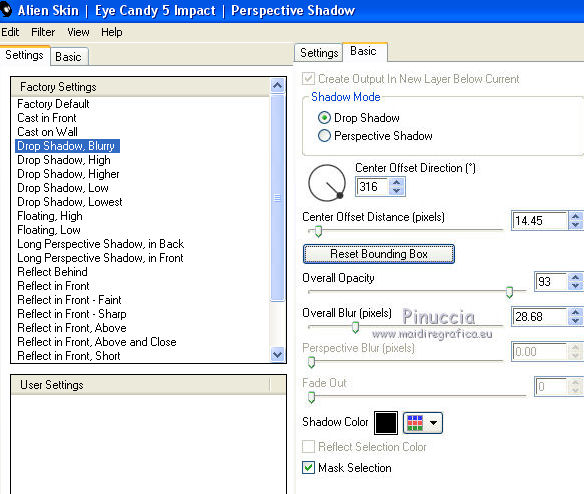 9. Effets>Modules Externes>Alien Skin Eye Candy 5 Impact - Drop shadow Blurry