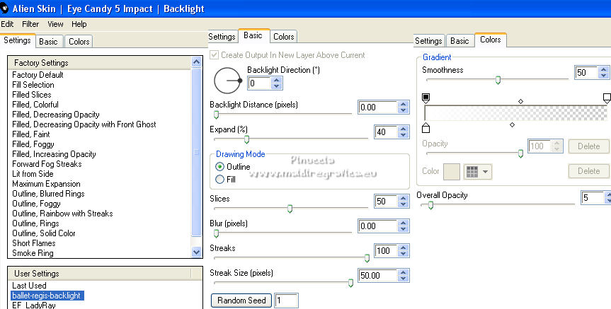 5. Effetti>Plugins>Alien Skin Eye Candy 5 Impact - Backlight.