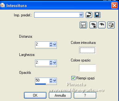 7. Effetti>Effetti di trama>Intessitura - entrambi i colori #ffffff.