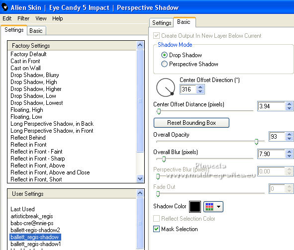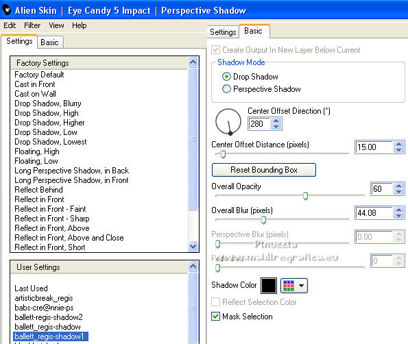 Seleziona il preset ballett-regis-shadow2 e ok.