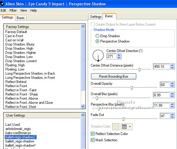 9. Effetti>Plugins>Alien Skin Eye Candy 5 Impact - Perspective Shadow.
