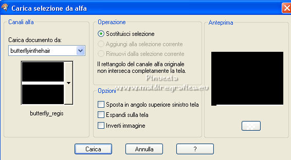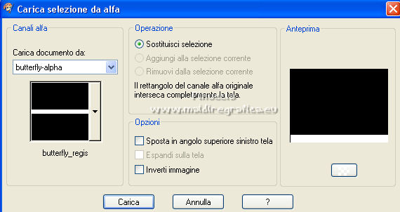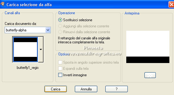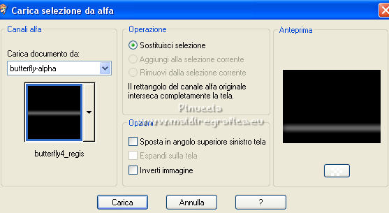 Apri il menu delle selezioni e carica la selezione butterfly4_regis.