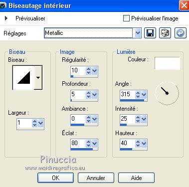 Effets>Effets 3D>Biseautage intérieur - preset Metallic