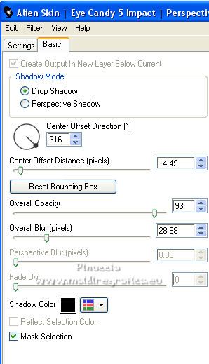 Effets>Modules Externes>Alien Skin Eye Candy 5 Impact - Perspective Shadow.