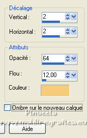 Effets>Modules Externes>Alien Skin Eye Candy 5 Impact - Perspective Shadow, comme précédemment.