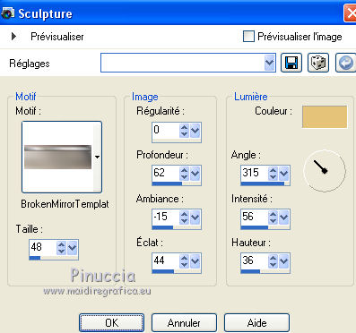 12. Effets>Effets de textures>Sculpture - sélectionner le motif Broken Mirror Templet