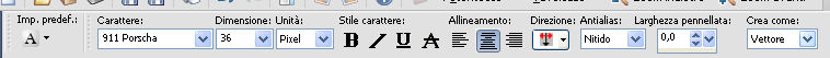 font 911 Porscha, dimensione 36 pixels (da regolare in base al testo alla versione di PSP),